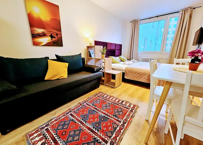 Az apartman Prága a Prága XI. e körzetben található. A Nemzeti Múzeum továbbá hozzávetőlegesen 7 km-re van a szálláshelytől.